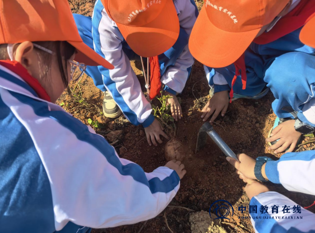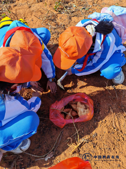 “轻拨浮土寻薯影,慢施巧力护圆仓!”田埂之上,二年级的孩子们围蹲在带队老师身旁,认真研学挖红薯的诀窍——循着翠绿藤蔓细细摸索,圆滚滚的红薯被小心翼翼捧出,沾着泥土的笑脸上,满是收获的纯粹喜悦。“孩子们捧起的不只是沉甸甸的红薯,更是对生命成长的真切体悟与对自然馈赠的珍视。”带队老师扈湘凤笑意盈盈地说道。基地菜园里,“小农夫”们蹲在菜畦边松土栽苗,掌心的泥点成为劳动最鲜活的勋章。“原来超市里的每棵蔬菜,都藏着这么多辛勤的汗水!以后我一定好好爱惜粮食,绝不浪费。”刚擦去额头汗珠的学生,郑重地对班主任说道。