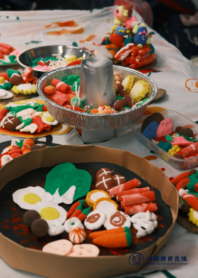 本次活动是学校深入落实“五育并举”教育方针的创新实践,旨在通过特色课程培养学生自主管理能力和劳动素养。前期筹备阶段,美术教师周君妮率先引导孩子们开展手工粘土制作,学生们发挥创意,用五彩粘土塑造出各类逼真火锅食材,提前营造节日氛围。班干部团队主动担当“小管家”,统筹推进各项工作:黄康顺、李可儿负责主题黑板报宣传;刘憬绘制安全海报;曾婉婷、刘博等六名同学担任火锅文化宣讲员;其余学生分组承担食材准备、洗切摆盘等任务。班级还通过任务卡引导学生自主准备食材,家长志愿者有序协助,形成“学生主导、家校协同”的育人合力。