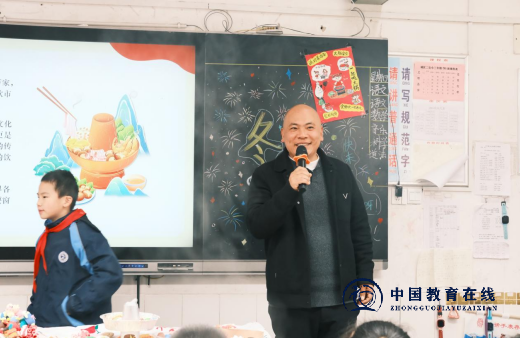 冬至阳生,岁回律转。12月18日中午,邵东市城区第二完全小学三年级285班教室暖意融融、笑语盈盈,一场以“冬至火锅派对”为主题的特色班本课程活动在此温馨举行。活动秉持“学生自主、协作实践”理念,将劳动教育、美术教育与传统文化教育深度融合,全程由班干部团队主导策划,教师与家长协同助力。校长刘伟亲临现场,与师生共品暖锅、共享欢乐,并对活动育人成效给予高度评价。