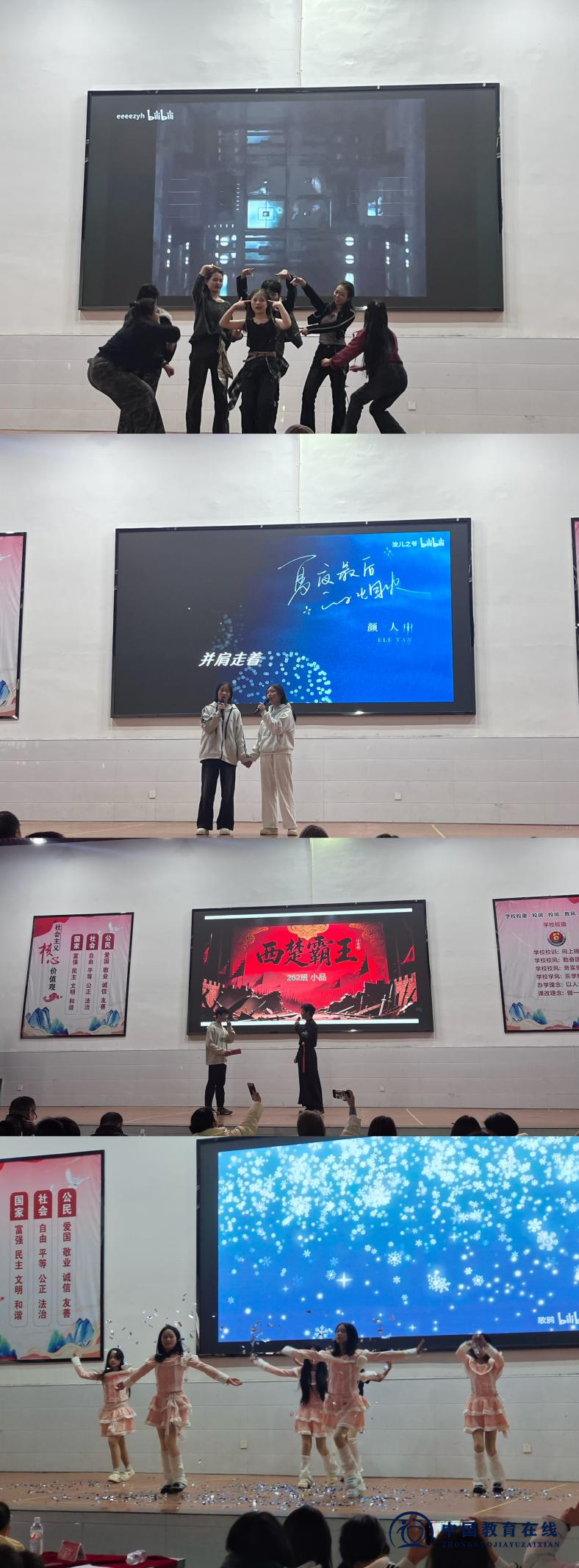 整场节目形式多样,内容丰富,融合了传统与现代、动感与深情。活力四射的舞蹈表演点燃了全场热情,舞者们用跃动的身姿诠释着青春的律动;幽默诙谐的相声小品,令台下笑声不断,掌声连连,展现了同学们出色的语言表达与舞台表现力;深情演绎的情景剧,贴近校园生活,情节感人至深,引发了师生的广泛共鸣;优美动听的歌曲演唱,或激昂高亢,或婉转抒情,唱出了少年的心声与梦想。尤其值得一提的是,创意十足的“课桌舞”表演,将日常学习场景与节奏韵律巧妙结合,整齐划一的动作、昂扬向上的精神面貌,成为了汇演中一道独特而亮丽的风景线,充分体现了同学们的创新意识与集体协作精神。